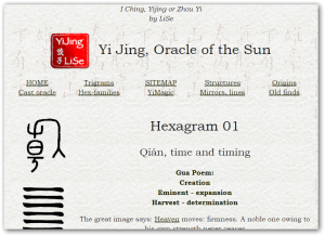 There are two truly outstanding I Ching translations currently being given away by their authors. I’m not suggesting these as a second-best, money-saving option: both are works of imagination, originality and scholarship way beyond many – if not most – published I Ching books. They’re LiSe Heyboer’s Yijing, Oracle of the Sun and Bradford Hatcher’s Book of Changes. If you don’t already have both of these, bookmark LiSe’s and download Bradford’s now. I have shelves full of I Ching books, and still turn to these two more often than any of them.