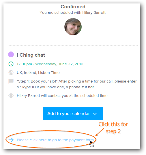 Pick a time on my calendar and book your call. (This step comes first, so you don’t pay until you know there’s a suitable time available for you.)